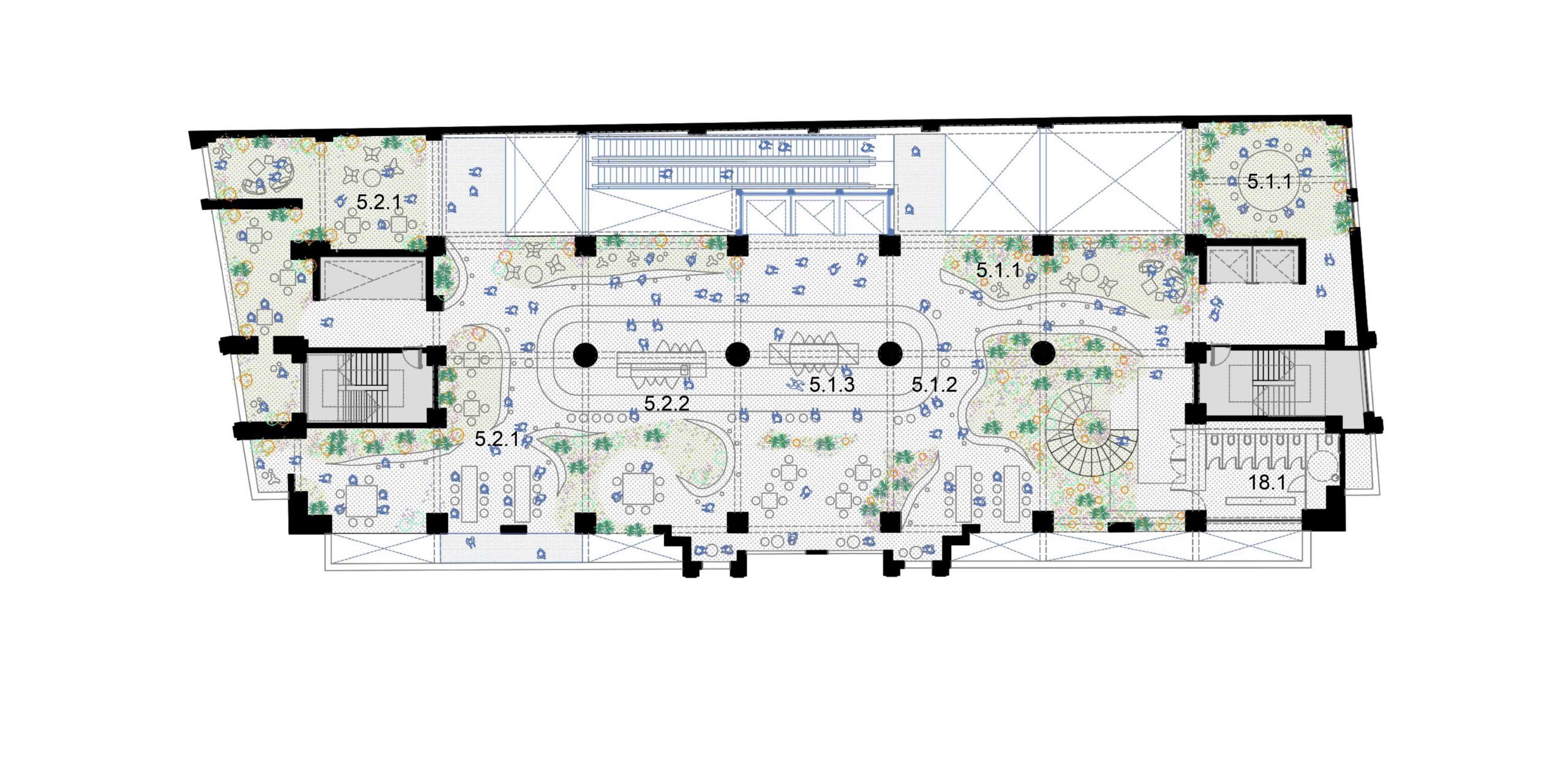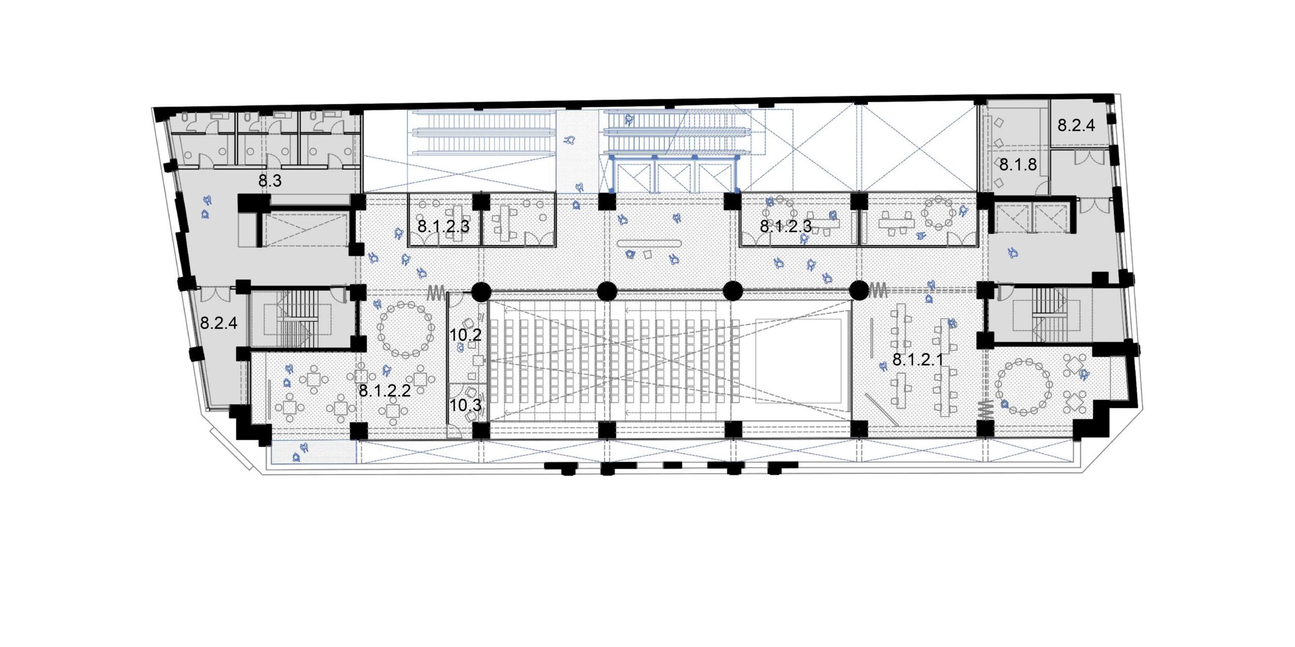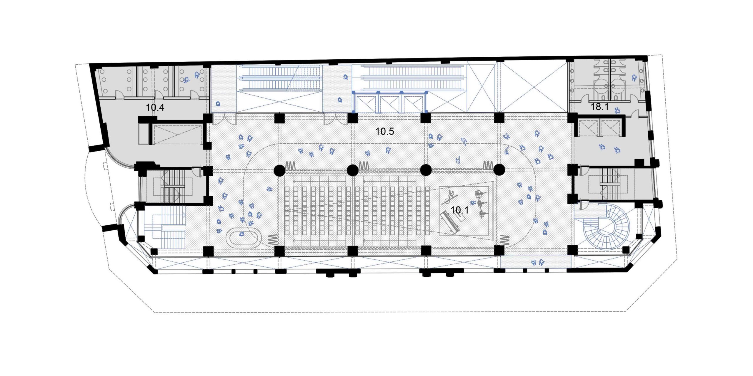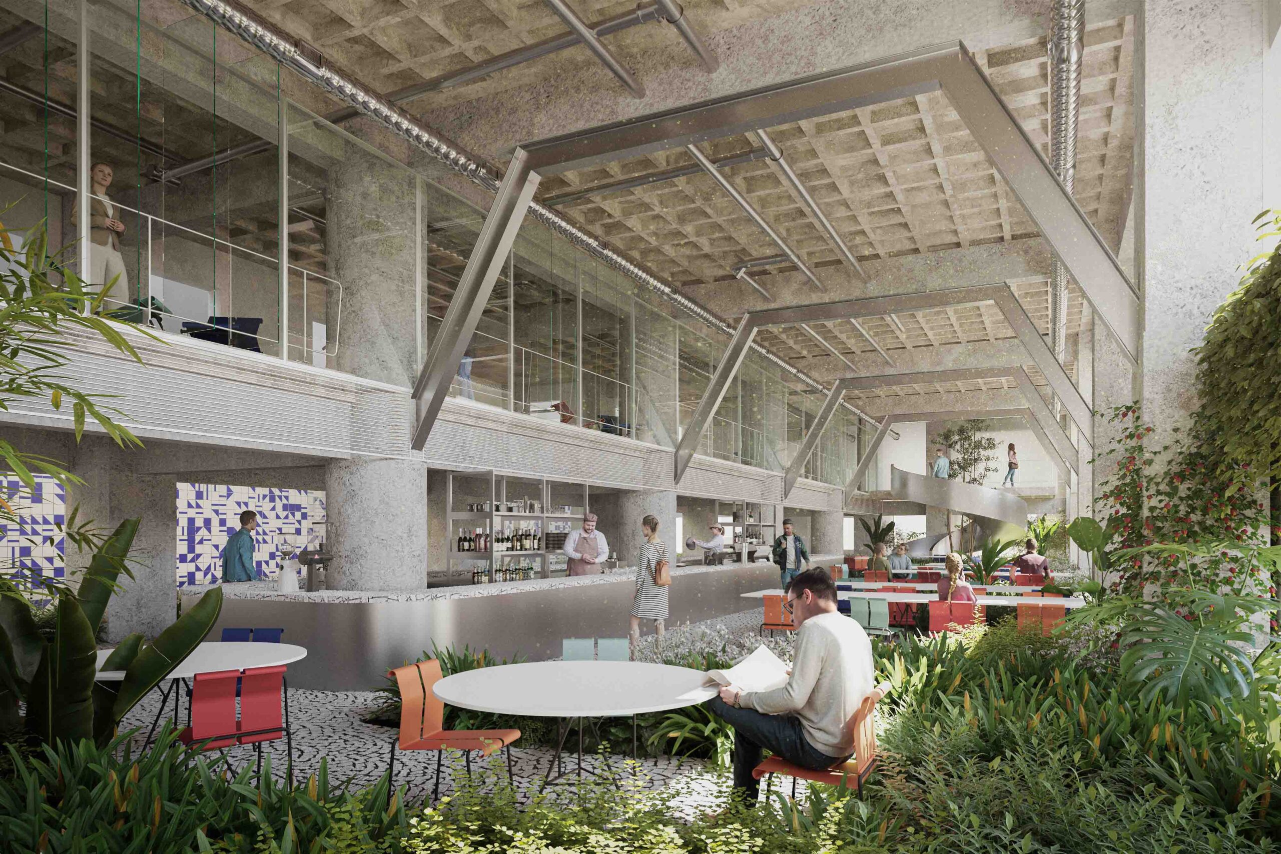 A preservação da arquitetura do edifício exige uma postura crítica em que estrutura e imagem são valorizadas segundo operações complementares. As lajes dos pavimentos correspondentes ao intervalo entre a primeira e a segunda praça, são recuadas até o alinhamento da torre. Com isso, a fachada histórica do embasamento é destacada, reforçando o seu sentido de marco cultural; ao ser vista então pela primeira vez, de um só golpe, em seu reverso, praticamente solta, sublinha a coexistência de múltiplas temporalidades. Por outro, no limite oposto do lote, o que era fundo de um edifício comercial torna-se protagonista como animado átrio avarandado, com iluminação natural por onde atravessam as escadas-rolantes. As demolições seguem um princípio técnico-poético, deixando à mostra a passagem do tempo, com suas marcas e imperfeições. Duas lajes são suprimidas para ampliar o pé-direito dos pavimentos do Bar-jardim e do Auditório. Este não se configura numa caixa-preta, com seus limites flexíveis, pode abrigar desde aulas e palestras a apresentações teatrais que contagiem os percursos verticais e horizontais do edifício. De modo geral, os espaços internos, outrora fechados, pouco ventilados e obstruídos, se tornam grandes planos com ampla iluminação e ventilação natural, garantindo um desempenho energético coerente e em consonância com as expectativas contemporâneas de um ambiente sustentável. Os jardins, além de um caráter lúdico, formam áreas de retenção das águas pluviais.