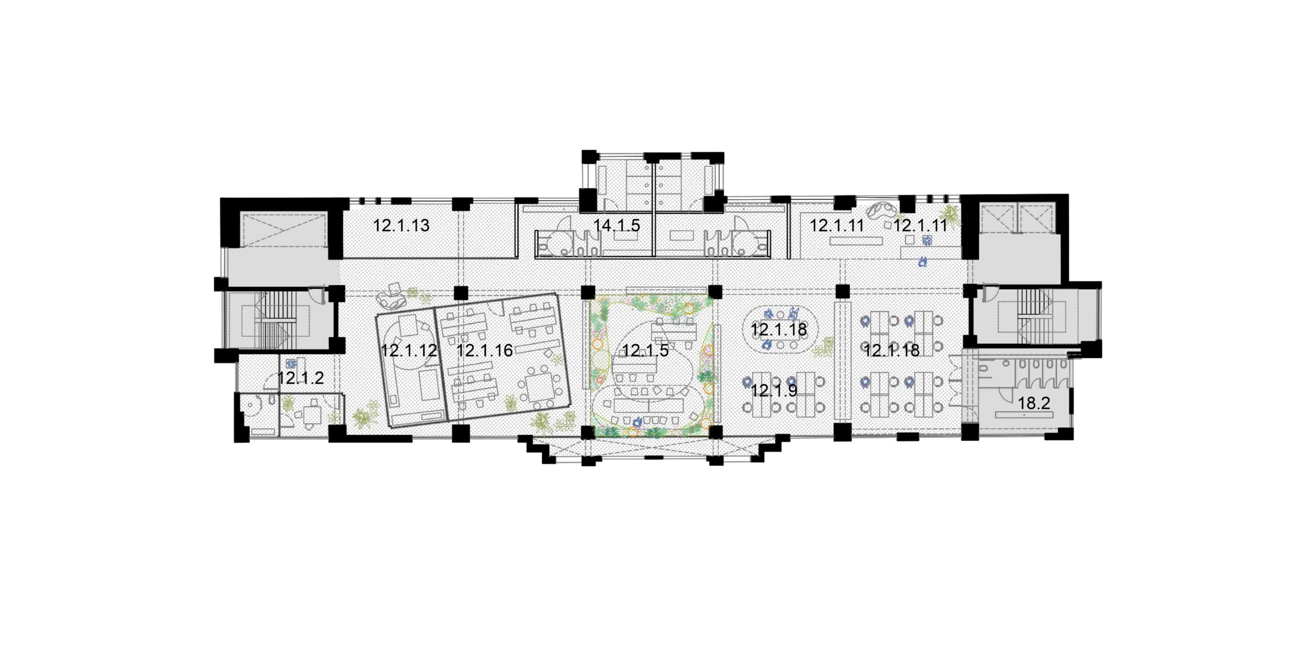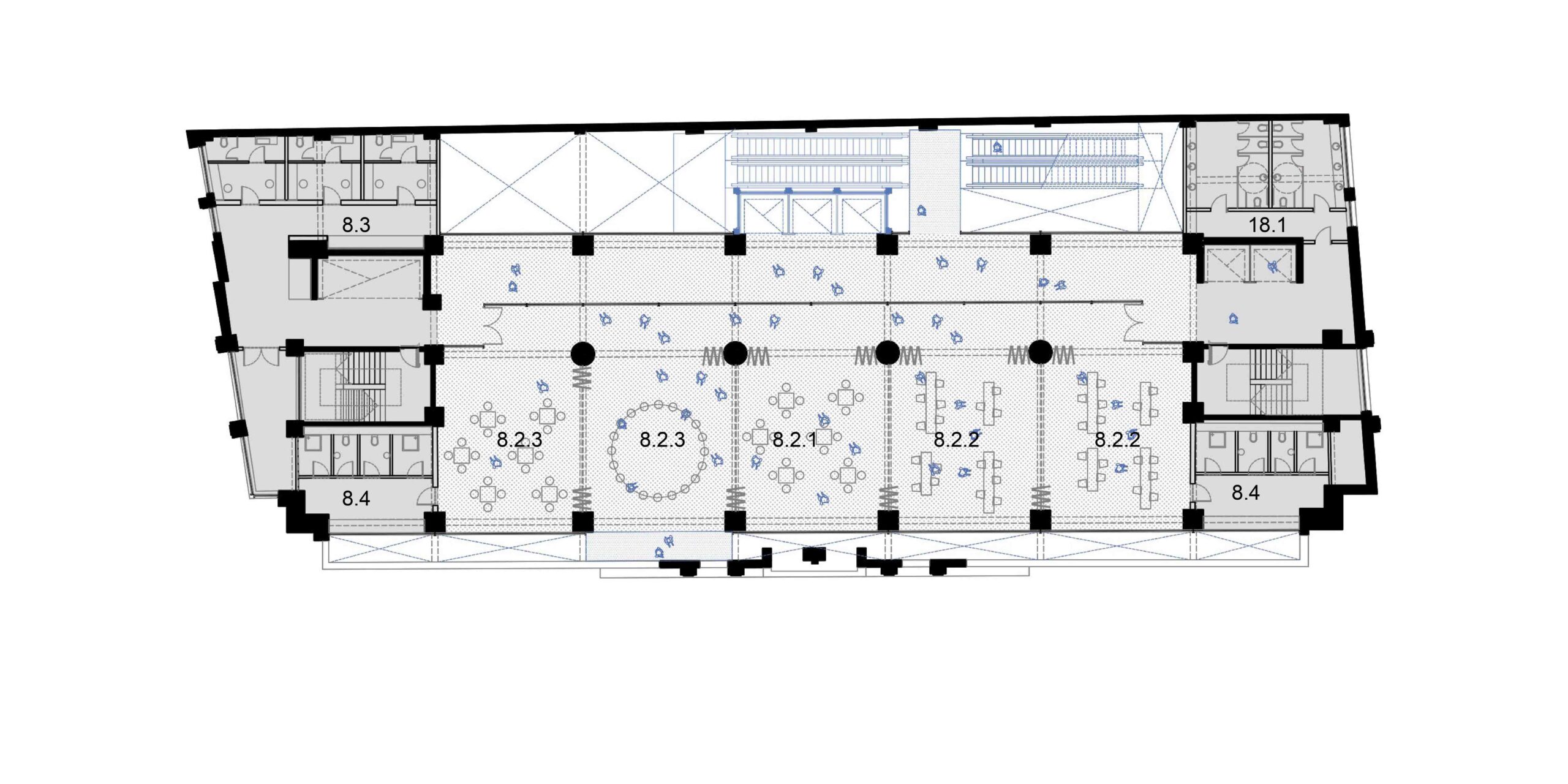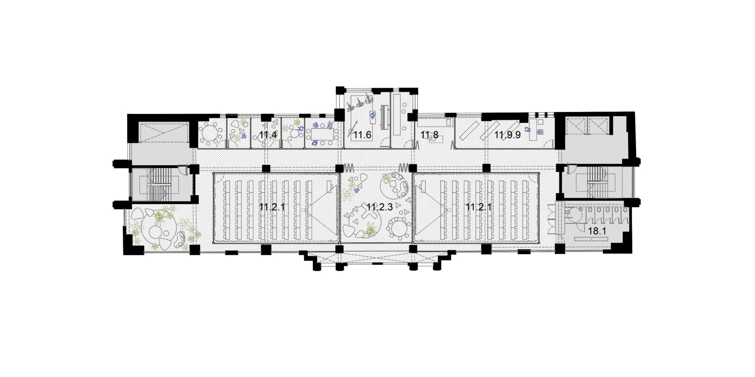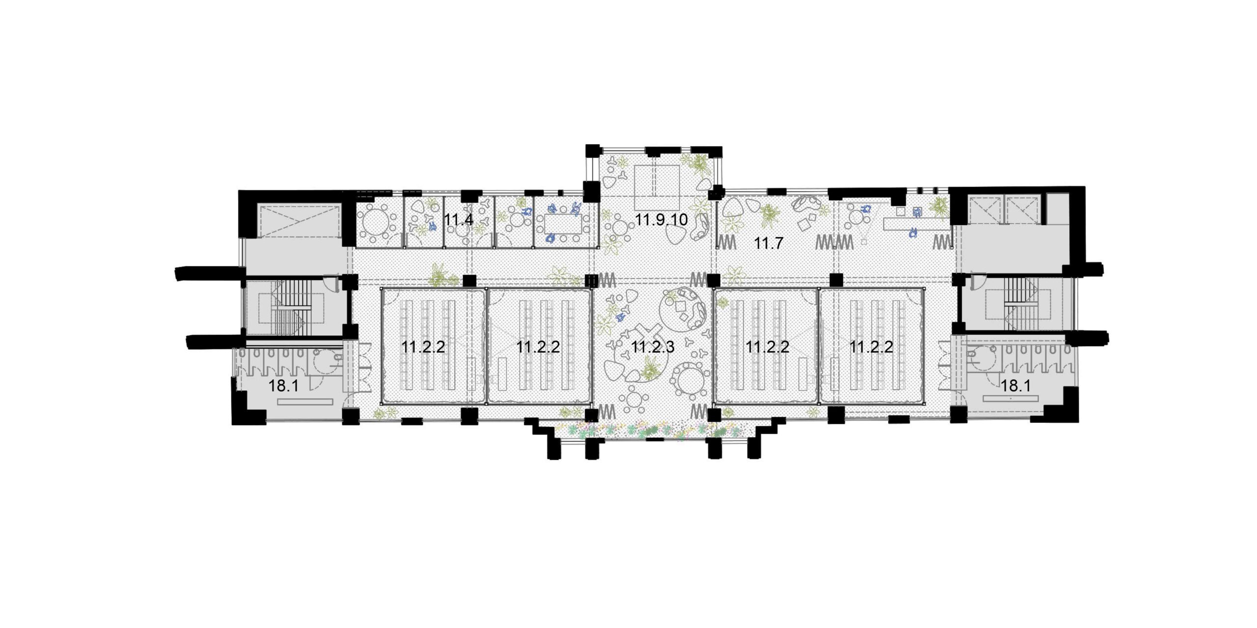 A preservação da arquitetura do edifício exige uma postura crítica em que estrutura e imagem são valorizadas segundo operações complementares. As lajes dos pavimentos correspondentes ao intervalo entre a primeira e a segunda praça, são recuadas até o alinhamento da torre. Com isso, a fachada histórica do embasamento é destacada, reforçando o seu sentido de marco cultural; ao ser vista então pela primeira vez, de um só golpe, em seu reverso, praticamente solta, sublinha a coexistência de múltiplas temporalidades. Por outro, no limite oposto do lote, o que era fundo de um edifício comercial torna-se protagonista como animado átrio avarandado, com iluminação natural por onde atravessam as escadas-rolantes. As demolições seguem um princípio técnico-poético, deixando à mostra a passagem do tempo, com suas marcas e imperfeições. Duas lajes são suprimidas para ampliar o pé-direito dos pavimentos do Bar-jardim e do Auditório. Este não se configura numa caixa-preta, com seus limites flexíveis, pode abrigar desde aulas e palestras a apresentações teatrais que contagiem os percursos verticais e horizontais do edifício. De modo geral, os espaços internos, outrora fechados, pouco ventilados e obstruídos, se tornam grandes planos com ampla iluminação e ventilação natural, garantindo um desempenho energético coerente e em consonância com as expectativas contemporâneas de um ambiente sustentável. Os jardins, além de um caráter lúdico, formam áreas de retenção das águas pluviais.