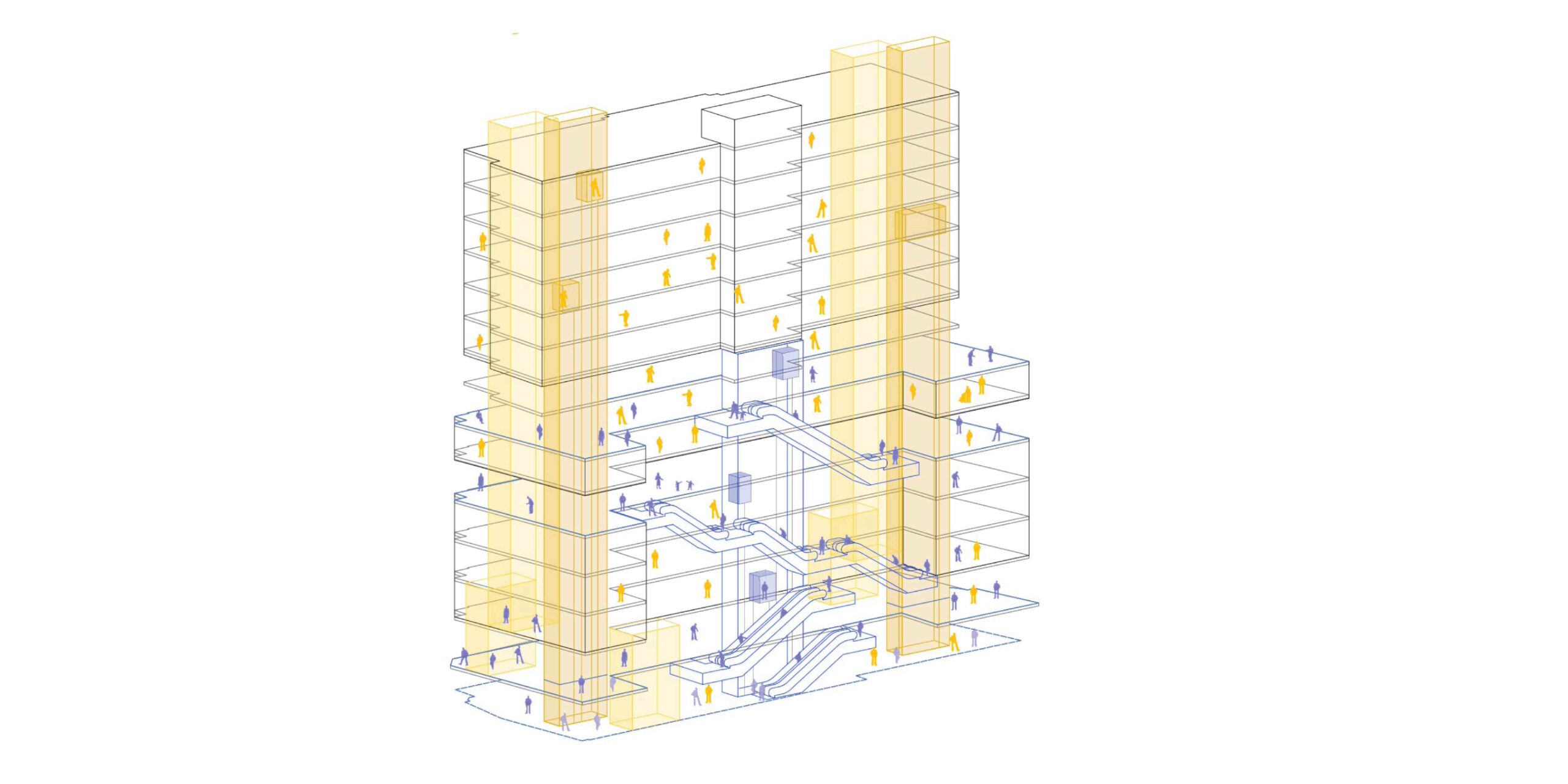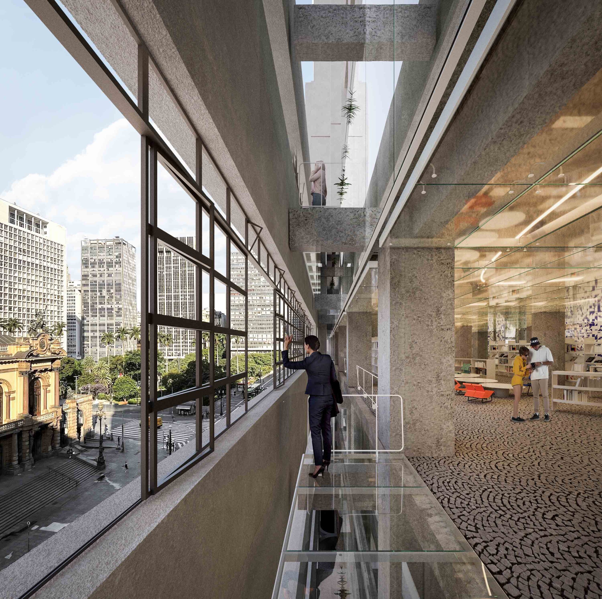 Estima-se que um milhão de pessoas atravessem o Viaduto do Chá todos os dias, em percursos ditados pelo tempo maquinal do trabalho, rumo à República, ao Anhangabaú, Sé e 9 de Julho. O edifício João Brícola recuperado pode significar um potente lugar de desaceleração – mero abrigo durante uma tarde chuvosa, pausa para o café, palco de prolongadas permanências ou imersões em atividades culturais e de lazer. As passagens, notou Benjamin, eram uma rua afeita a desejos, mediante a sucessão de situações por elas estimuladas. O Sesc-Galeria se apresenta com sentido similar, uma estrutura essencialmente pública e urbana capaz de amparar os imprevisíveis acontecimentos que podem reinventar seus espaços todos os dias.